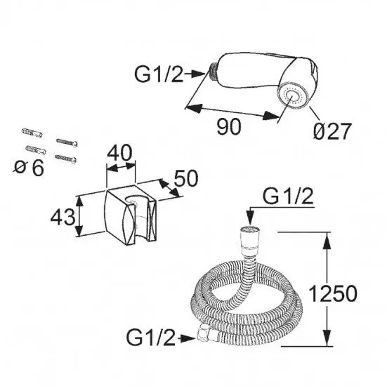 Душ гигиенический Bozz 7304205-00 с клавишей открытия струи. Отличная струя, класс расхода воды А. Класс шума I. В комплект входят металлический шланг G1/2хG1/2х1250 мм и настенный держатель для душа с дюбель-шурупами.
