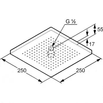 Верxний хромированный душ A-QA 6653105-00 с системой против известковых отложений. Душ с дождевой струей на шарнире. Класс расхода воды В, класс шума I. Монтаж настенный или потолочный, подключение 1/2".