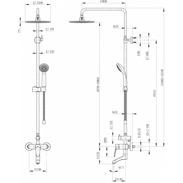 Душевая колонна ECO со смесителем для ванны, поворотный излив F6111147C-A-RUS