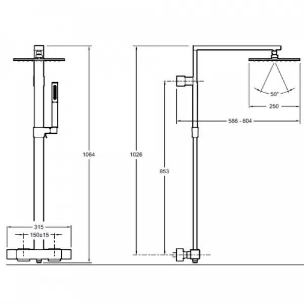 - Душевая колонна с термостатическим смесителем и квадратным верхним душем,