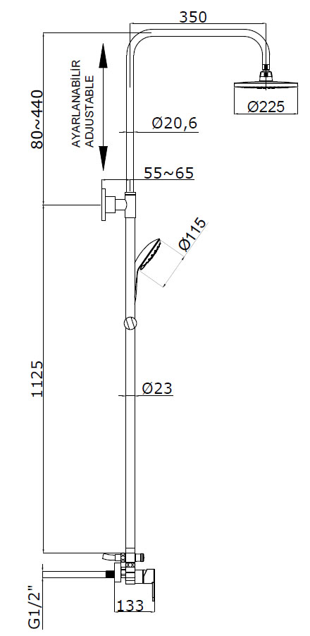 Душевая система AZARIO TEVIS со смесителем для душа, хром (AZ-15780161). Регулировка стойки по высоте: 156.5 см. Вынос лейки верхнего душа: 41 см. Форма ручной лейки: округлая. Лейка и шланг: есть, в комплекте. Область применения: бытовая. Тип подводки: жёсткая. Стилистика дизайна: современный. Размер лейки верхнего душа: 22.5 см. Размер ручной лейки: 11.5 см. Форма лейки верхнего душа: округлая. Оснащение смесителя: эксцентрики, душевой шланг, душевая лейка, дивертор.