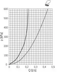 - Потеря давления при расходе 0.2 л/с (без ограничителя потока) 120 kPa
