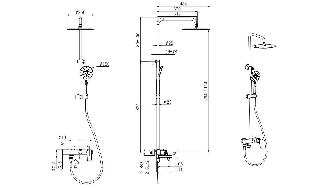 регулируемая душевая штанга из нержавеющей стали, выдвигающаяся до 1114 мм в высоту