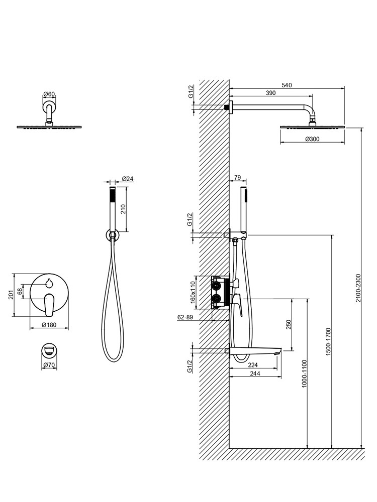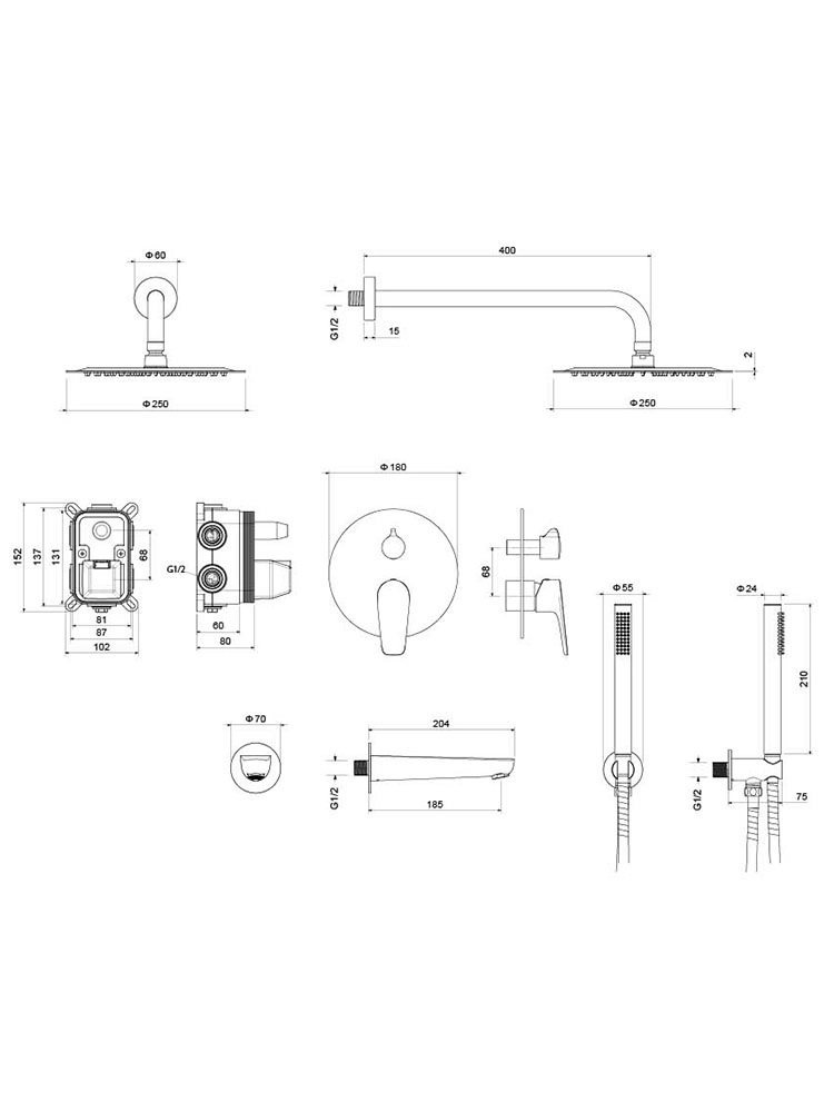 Душевая лейка может быть стандартной круглой формы, стильной и современной квадратной формы, интересен вариант с цилиндром (в виде "трубы").