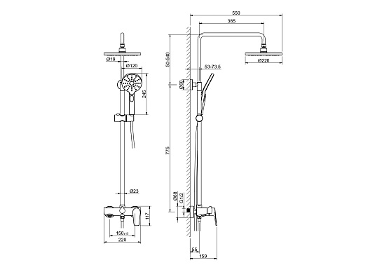 • регулируемая душевая штанга из нержавеющей стали, выдвигающаяся до 1384 мм в высоту