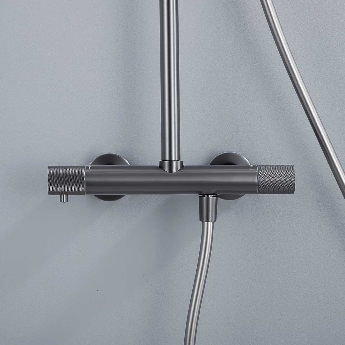 Душевая система Desire - это воплощение инноваций и современного дизайна. Выполненная из вороненой стали, она обещает долговечность и прочность, придавая вашей ванной комнате изысканное и элегантное оформление. С термостатом без излива, эта система обеспечивает максимальный контроль над температурой воды, гарантируя наслаждение и комфорт во время вашего душа. А компактный верхний душ диаметром 25 см порадует вас мощным и приятным потоком воды, создавая неповторимое ощущение расслабления.