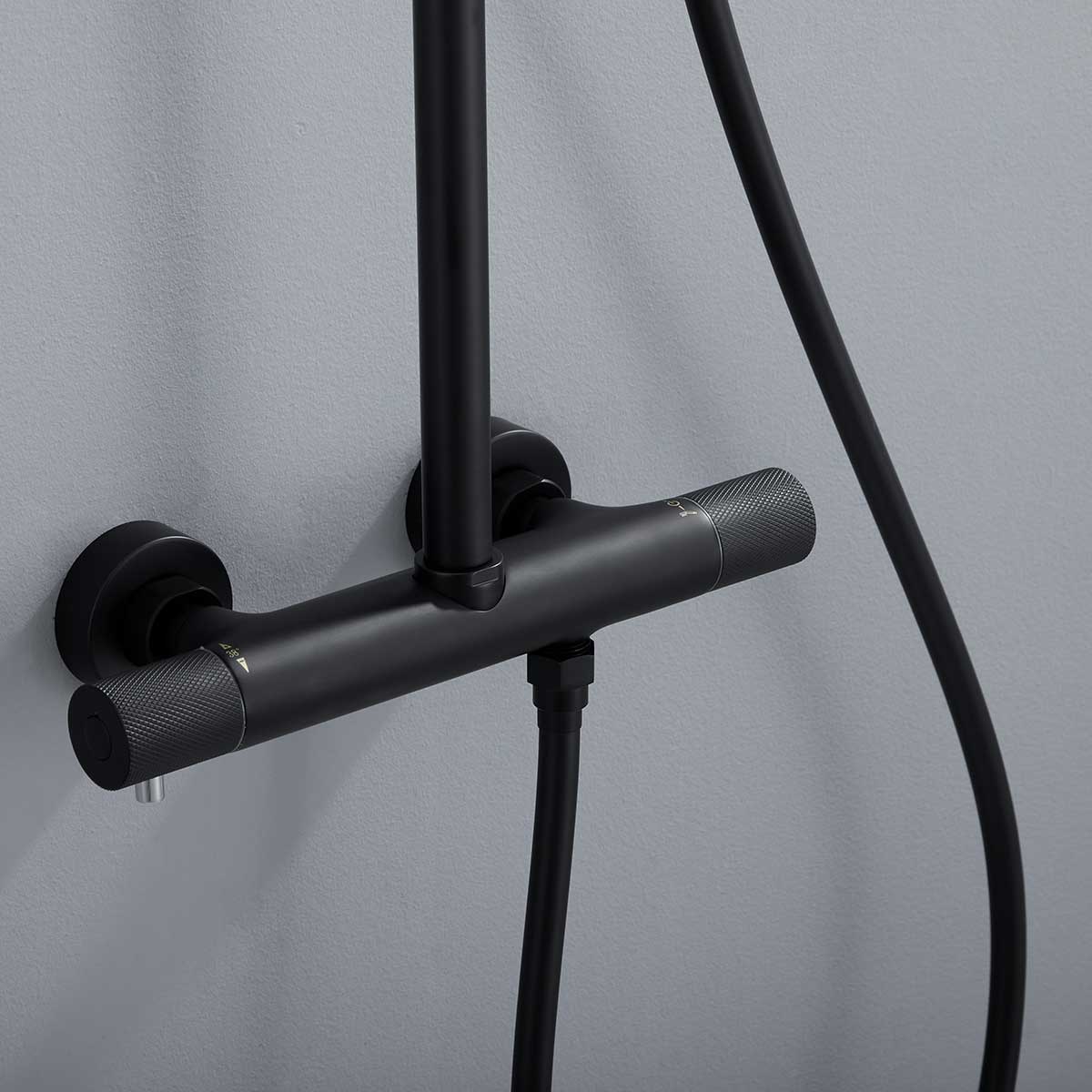Душевая система Desire без излива - это воплощение современных инноваций и стильного дизайна. Великолепно дополняющая вашу ванную комнату, эта система обладает черным покрытием, которое придает ей роскошный и шикарный вид. Термостатический регулятор обеспечивает точный контроль над температурой воды, позволяя вам наслаждаться идеальным душем с максимальным комфортом. А верхний душ диаметром 25 см создает потрясающий поток воды, обеспечивая превосходное ощущение расслабления и освежения.