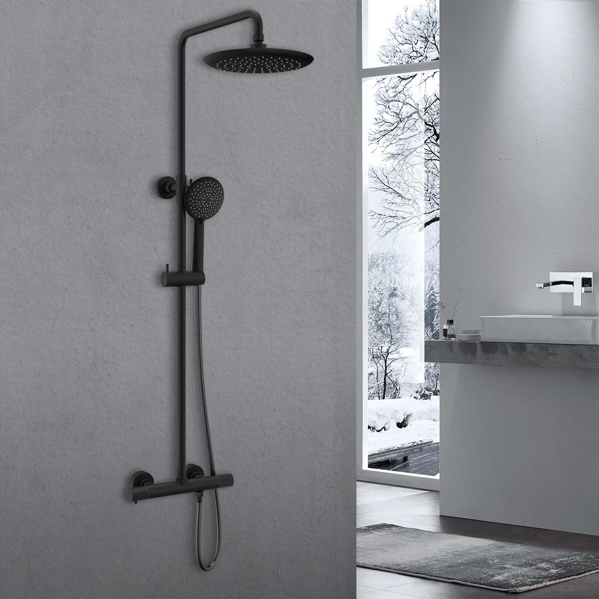 Купить Душевая система Desire термостатическая без излива, 25см верх душ, черный VSFS-1D0TMB Vincea артикул: 221316 в интернет-магазине ESMAG - Екатеринбург.