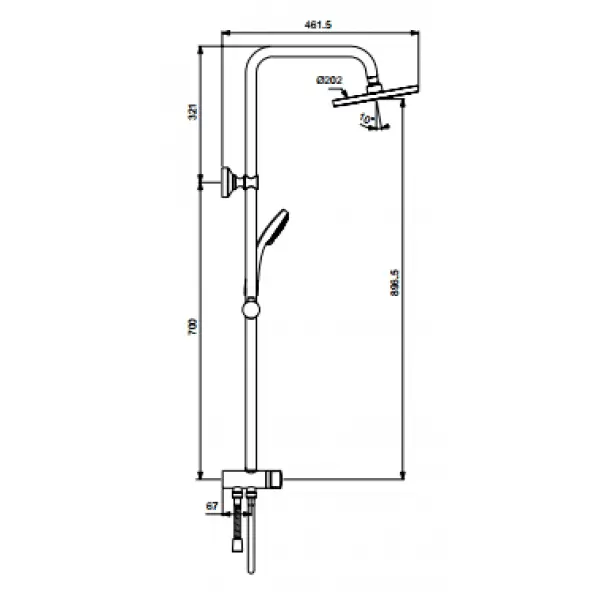 - Расстояние от нижнего крепления до верхнего душа: 895 мм