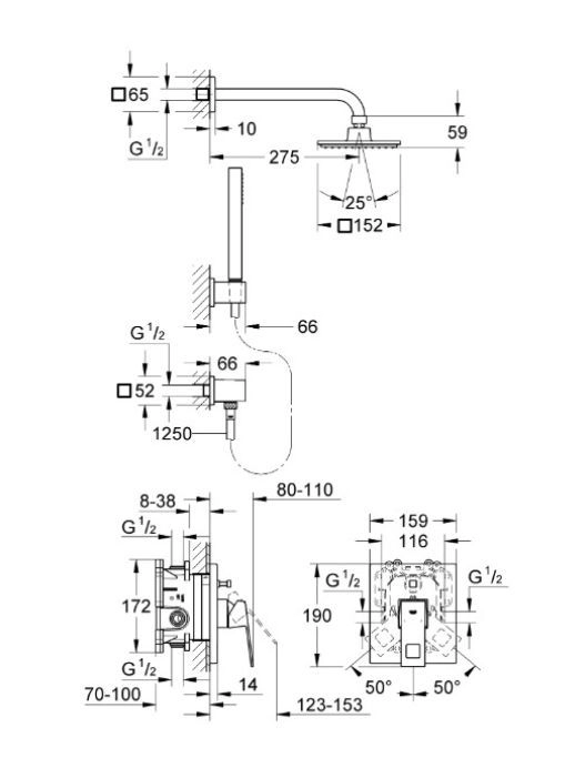 - Euphoria Cube Подключение для душевого шланга (27 704 000) минимальное давление 1,0 бар