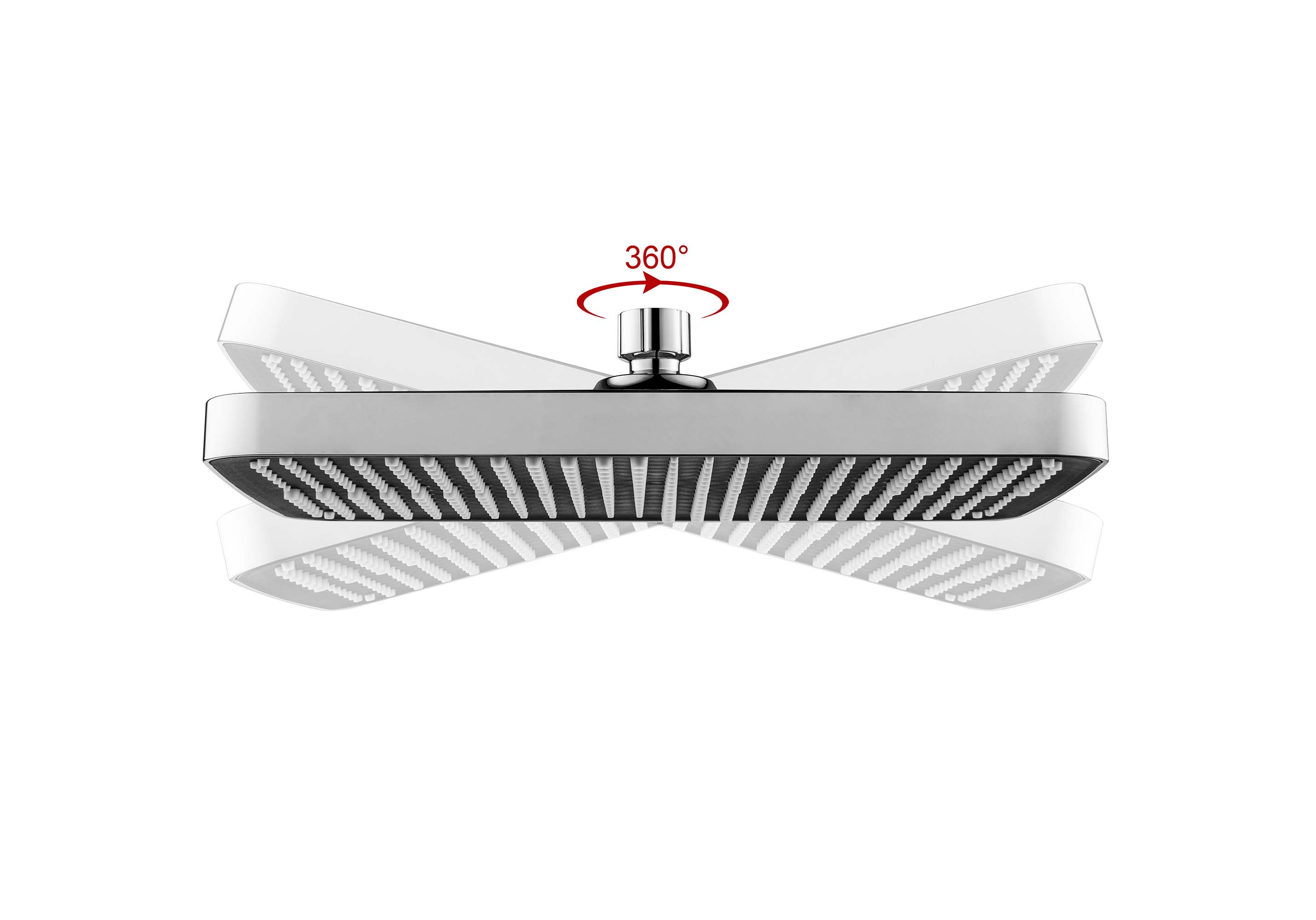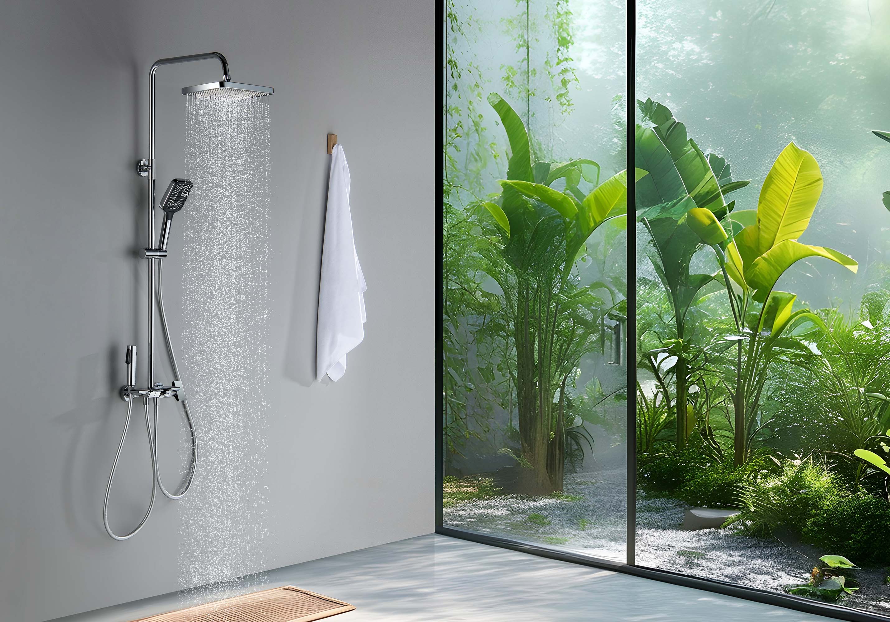 Одной из ключевых особенностей является скрытый излив, который придает системе современный и минималистичный вид, освобождая пространство и создавая ощущение легкости. Регулируемая душевая штанга из нержавеющей стали выдвигается до 1340 мм в высоту, что позволяет легко настроить ее под индивидуальные предпочтения каждого пользователя.