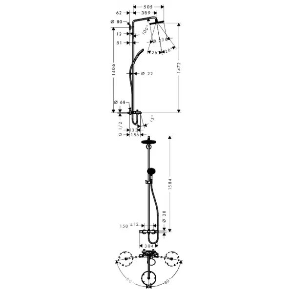 - длина держателя для душа: 460 мм