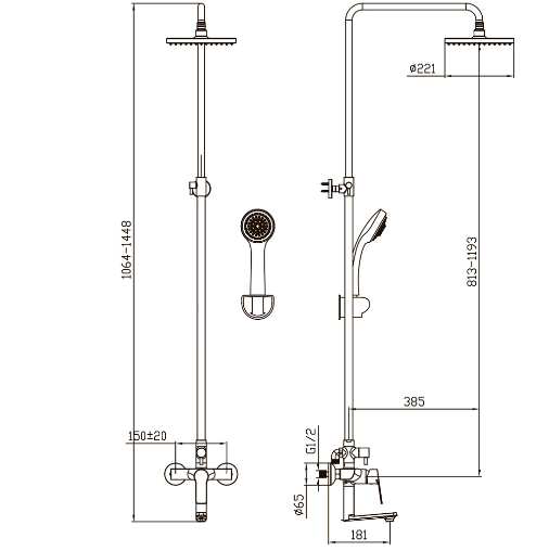 Купить Душевая система с верхним душем 220 мм 2344844-2C Elghansa артикул: 208136 в интернет-магазине ESMAG - Екатеринбург.