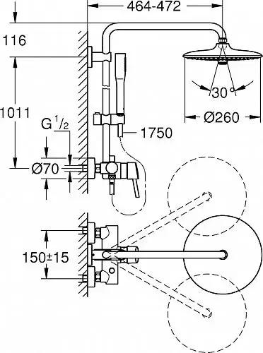 Поворотный горизонтальный кронштейн с лейкой тропического душа позволит установить устройство в нужном положении. Управление температурой воды и напором осуществляется легким плавным поворотом рычага с технологией GROHE SilkMove®. Все металлические детали комплекта выполнены из латуни, устойчивой к воздействию коррозии. Ее прочностные характеристики усилены хромированным покрытием, которое не потеряет своего ослепительного блеска на протяжении всего срока службы.