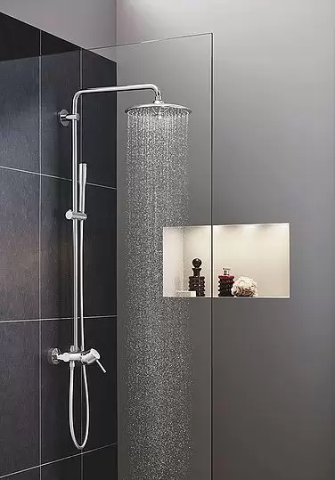 Двухлеечная стильная душевая стойка с однорычажным смесителем станет центральным элементом ванной комнаты. Система оснащена передовыми технологиями немецкой компании Grohe, что гарантирует безукоризненное качество работы устройства и его прекрасную функциональность на протяжении всего срока службы. Благодаря трем режимам тропического душа – «дождь», «дождь с экономным расходом воды» и «интенсивная круговая струя» – вы без труда найдете свой идеальный душ.