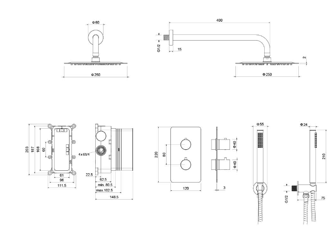 Душевой комплект Set 3 в 1 Европа AQ1376MB Aquatek
