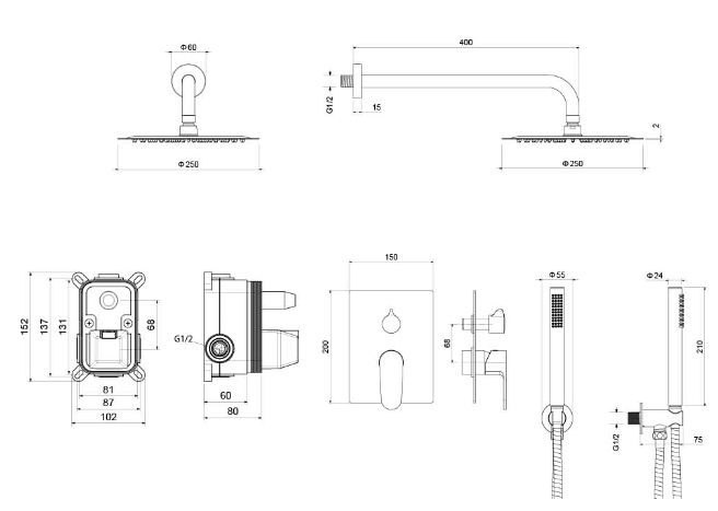 Душевой комплект Set 3 в 1 Оберон AQ1272CR Aquatek