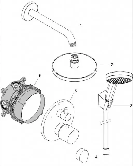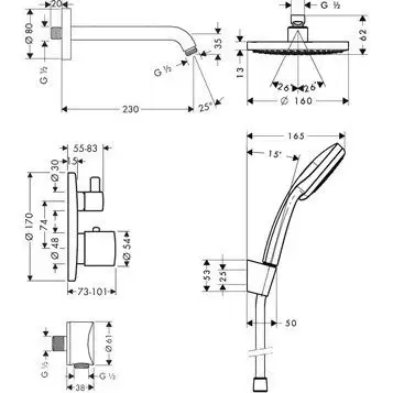 Душевой набор скрытого монтажа HANSGROHE Croma C 160 26473000 с верхним душем Croma 160 1jet с шарнирным соединением, держателем душа 230 мм, 1/2'', ручным душем Croma 100 Vario с держателем Porter'S и шлангом 1,25 м, 1/2'', шланговым подсоединением Fixfit S 1/2'', термостатом Ecostat S с запорным / переключающим вентилем, скрытой частью iBox universal.