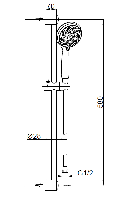 Душевой набор AZARIO MANO: душевая лейка, шланг, штанга, хром (AZ-15782010).