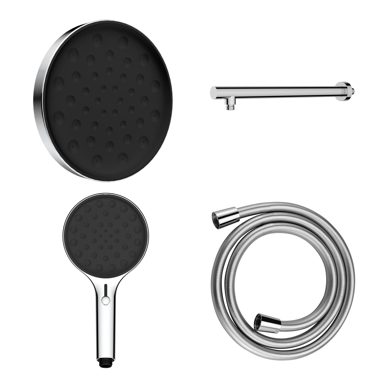 В комплекте Inspire вы найдете верхний душ с держателем и ручной душ с гибким шлангом. Это симбиоз двух изящных и эффективных душевых систем, предлагающих вам максимальную гибкость и комфорт во время принятия душа. Насладитесь потоком воды из верхнего душа, окруженного изысканным дизайном и солнечными лучами хрома. А возможность использования ручного душа с шлангом позволит вам точечно настраивать направление и интенсивность потока воды, предоставляя вам весь спектр возможностей для настройки вашего комфорта.