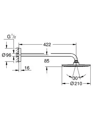Набор верхний душ с душевым кронштейном 450 мм из коллекции Rainshower Cosmopolitan 210 GROHE 26171000 имеет хромированную поверхность, систему против известковых отложений, может использоваться с проточным водонагревателем.