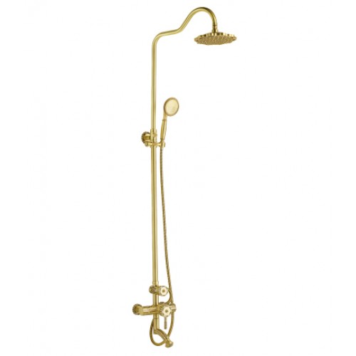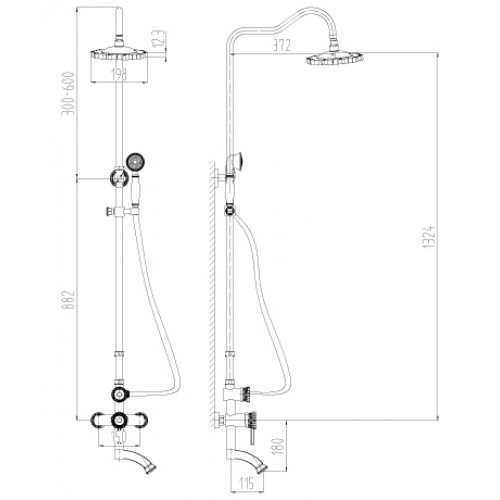 Смеситель для ванны и душа с регулируемой высотой штанги, поворотным изливом и верхней душевой лейкой "Тропический дождь"