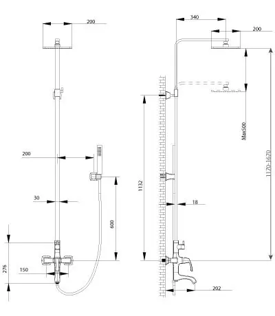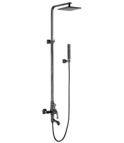 Смеситель для ванны и душа с регулируемой высотой штанги, поворотным изливом и верхней душевой лейкой "Тропический дождь"