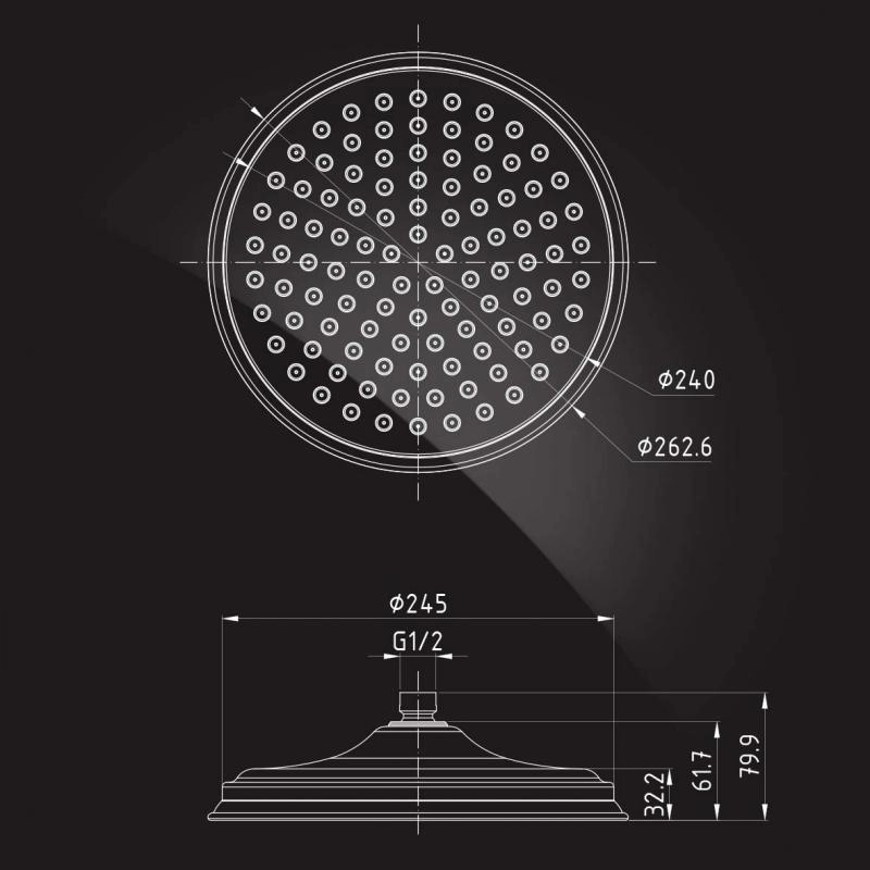 Верхний душ латунь, круглый D=262 мм, ClassicLine CD-260-Gold в г.Екатеринбург