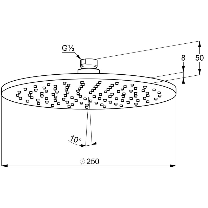 Расход воды верхним душем 23 л/мин при давлении 3 бара