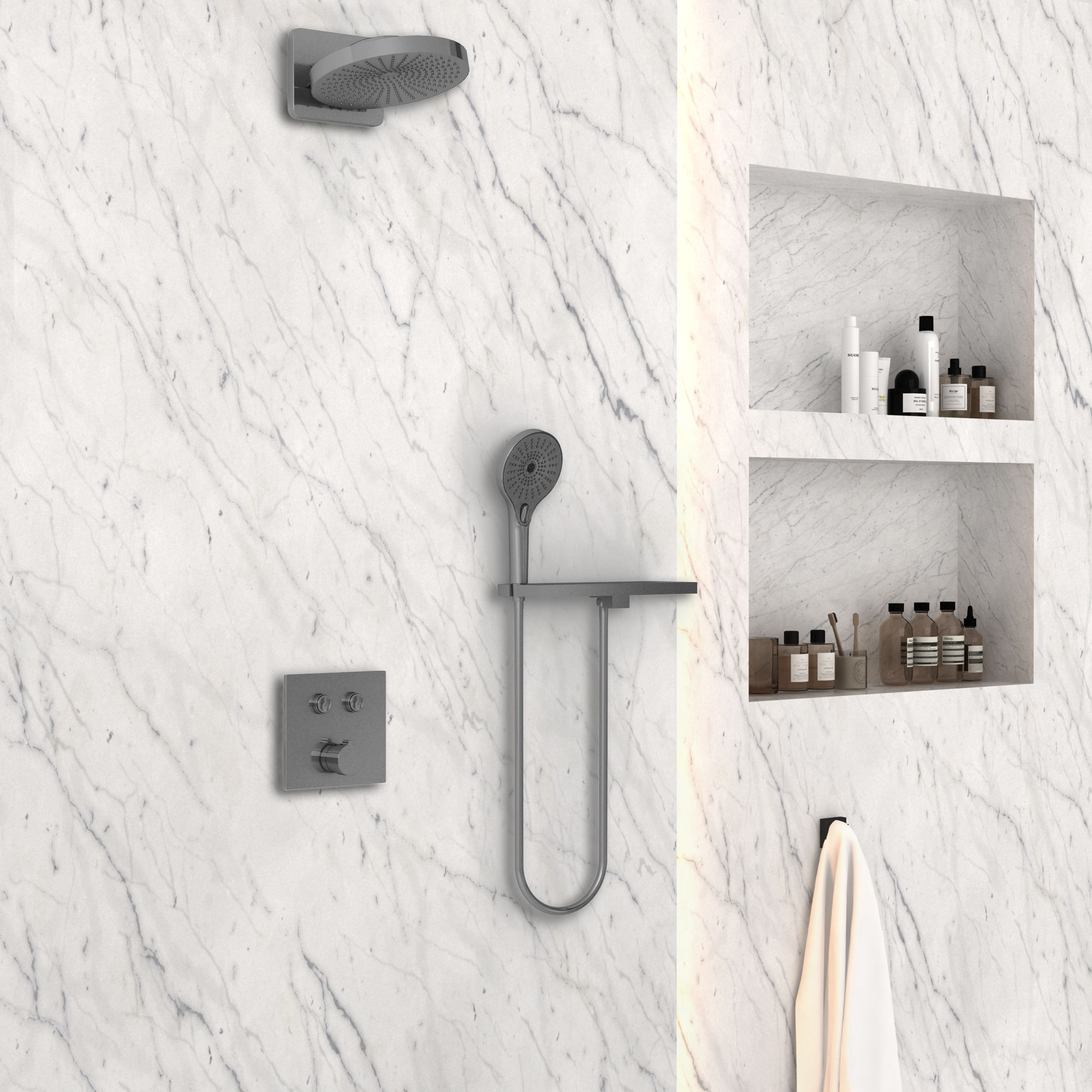Встраиваемая душевая система Inspire с двумя режимами в исполнении вороненой стали предлагает непревзойденные возможности для вашего душевого опыта. Комбинируйте режимы с легкостью и наслаждайтесь великолепными ощущениями расслабления и освежения. Эта система обеспечит вашу ванную комнату утонченностью и роскошью, которые вы заслуживаете. Откройте новый уровень комфорта и погрузитесь в захватывающую атмосферу душевного блаженства.