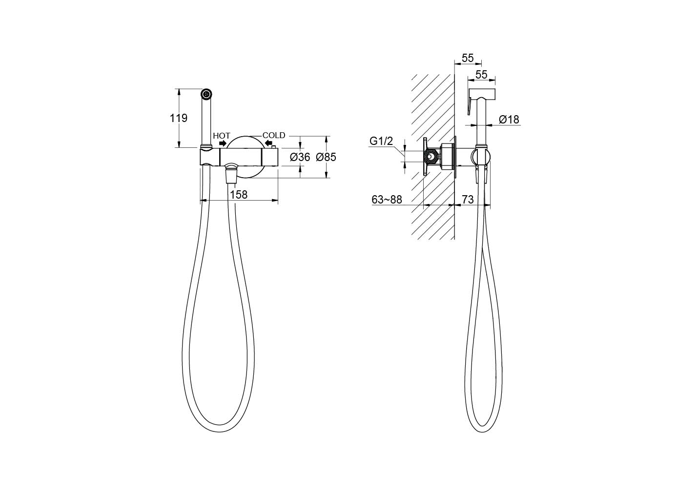 • в комплекте гигиенический душ, держатель для душа и шланг