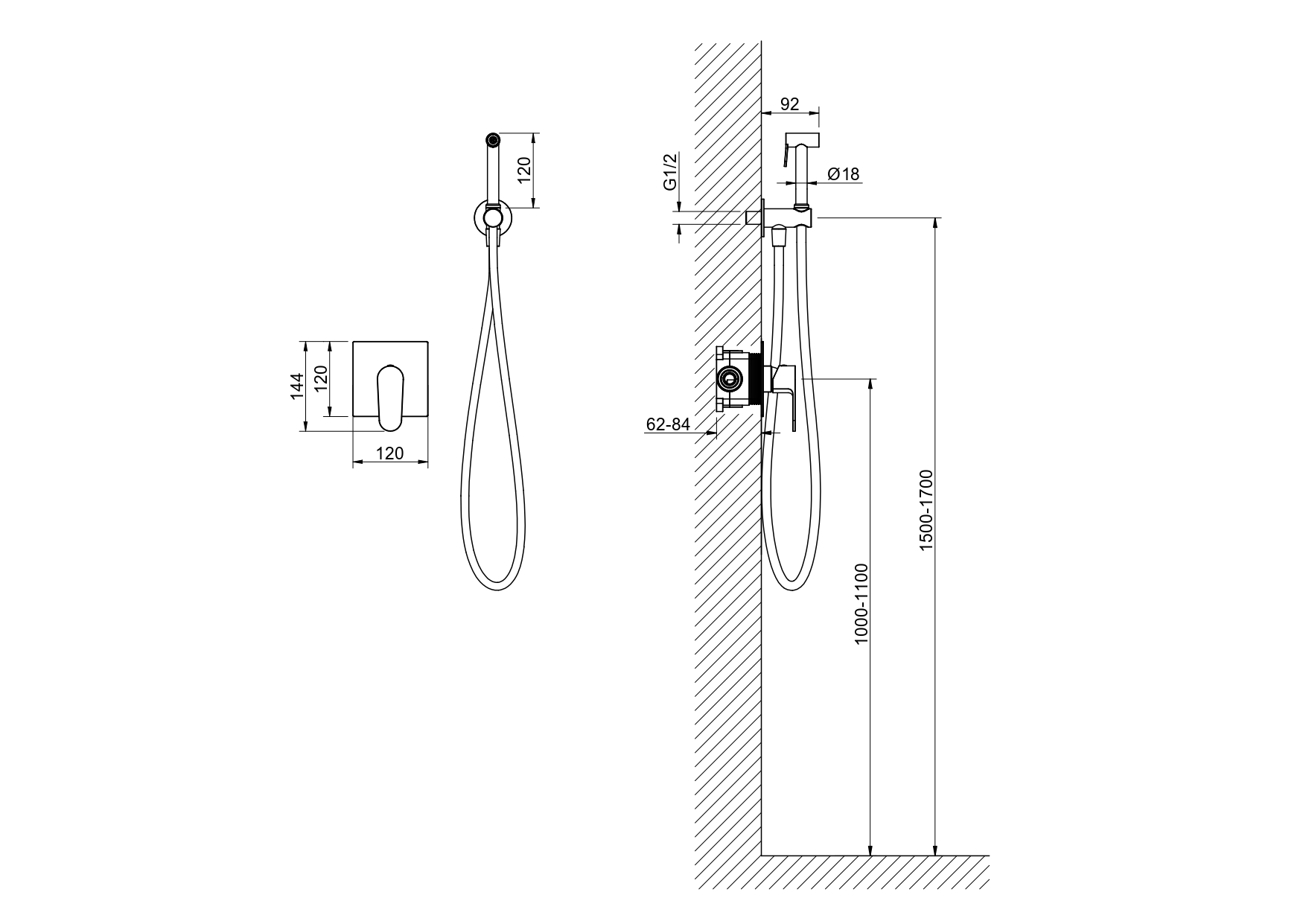 Длина шланга для гигиенического душа (см): 120