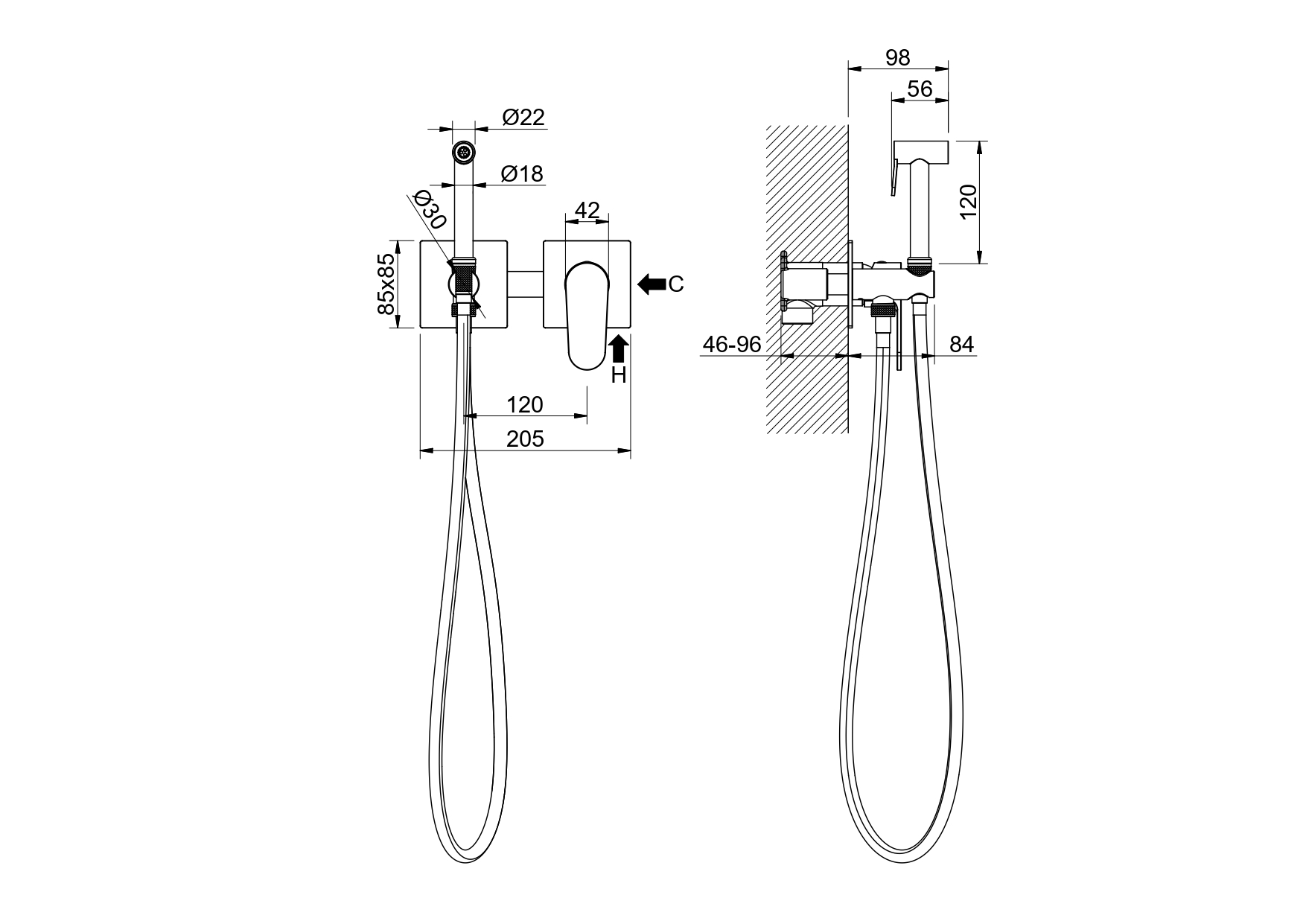 Длина шланга для гигиенического душа (см): 120