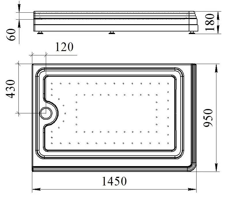 Душевой поддон 145х95 предназначен специально для душевого ограждения Лоренцо Великолепный 140, однако может использоваться и отдельно. Достаточно лишь повесить карниз со шторкой — и удобный уголок для душа готов.