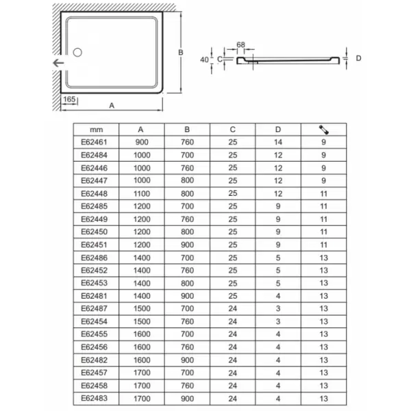 Купить Душевой поддон Flight E62451-00 прямоугольный 1200х900 артикул: 143363 в интернет-магазине ESMAG - Екатеринбург.