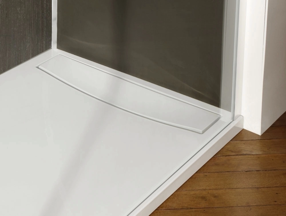 Белый акриловый душевой поддон, укрепленный искусственным камнем.