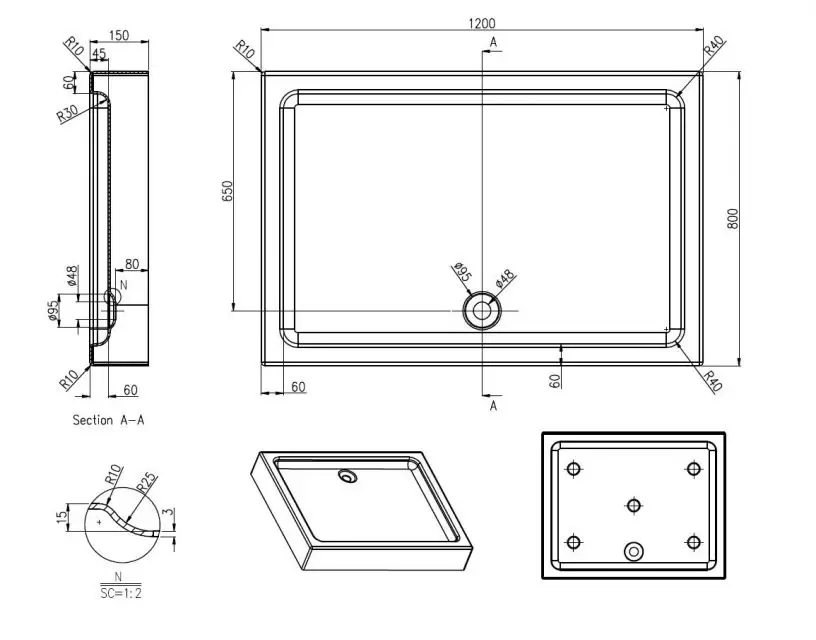 Поддон 800*1200*150 к AZ-NNU1231-L/R/AZ-NKF1131/AZ-NNQ1131/AZ-NWK1241 800 P1812 R/L AZARIO