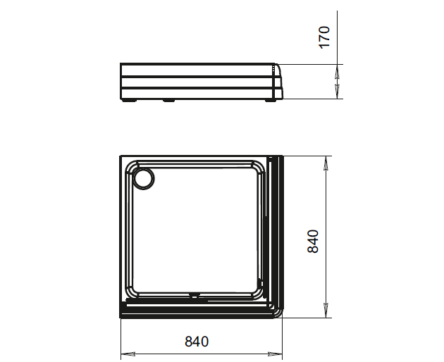 Квадратный душевой поддон 84х84 — отличный и недорогой вариант обустройства душевой в небольшой ванной комнате. Достаточно лишь повесить карниз со шторкой — и удобный уголок для душа готов.
