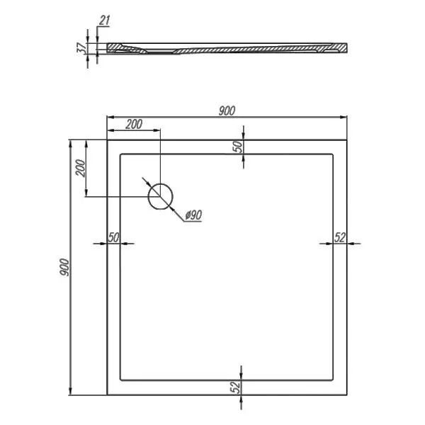 Габаритные размеры ДхШхВ: 900x900x37 мм