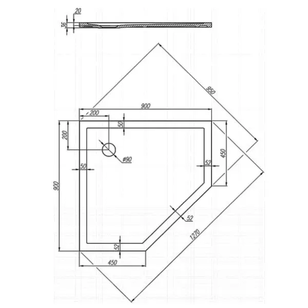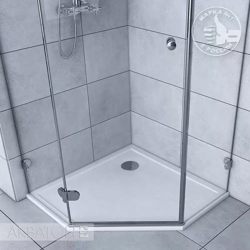 Пентагональный душевой поддон из прочного экологичного материала в современном дизайне – стильное интерьерное решение