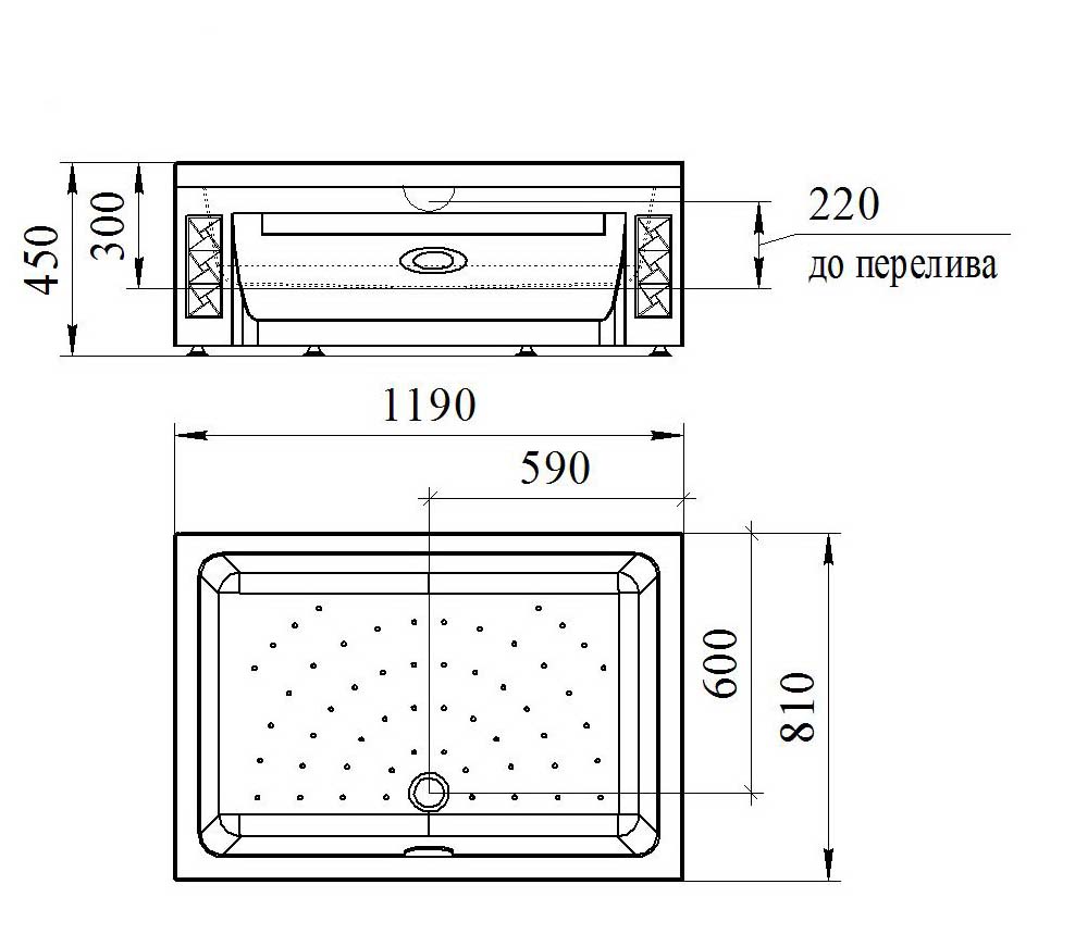 В комплектацию входит акриловый поддон, рама-подставка, устройство слива, фронтальная панель, торцевая панель.
