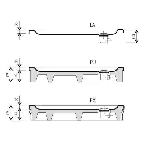 - самонесущий поддон с внешней поверхностью, предназначенной для облицовки - EX
