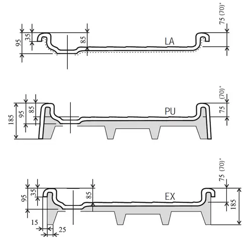 - самонесущий поддон с внешней поверхностью, предназначенной для облицовки - EX