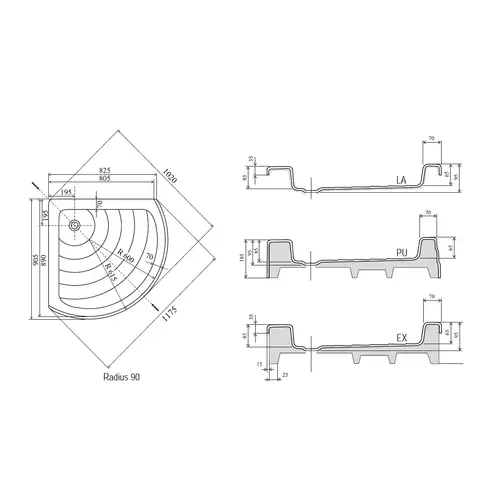 - самонесущий поддон с внешней поверхностью, предназначенной для облицовки - EX