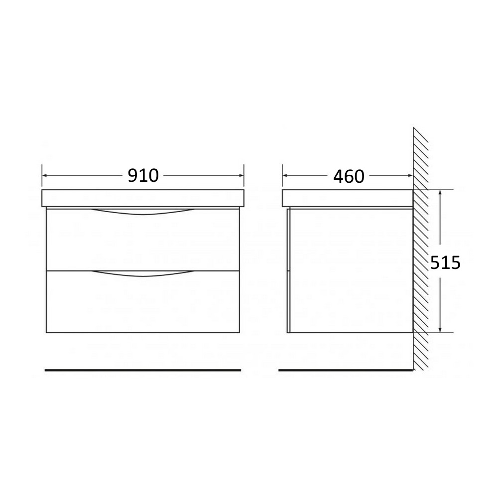 База под раковину подвесная, ETNA Rovere Bianco, 900x455x500, ETNA-900-2C-SO-WO-P