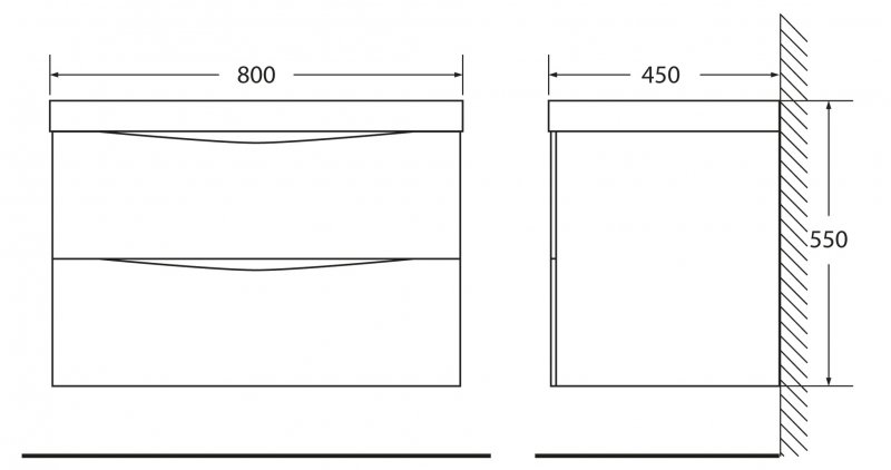 База под раковину подвесная, MARINO Rovere Nature, 800x450x500, MARINO-800-2C-SO-RN-P