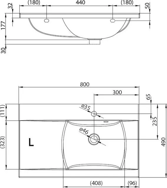 - С отверстием под смеситель 35 мм