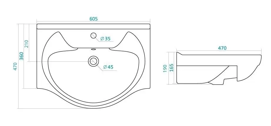 - Габаритные размеры, ШхВхГ мм: 605 x 190 x 470