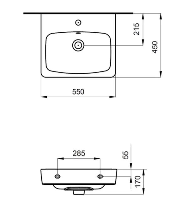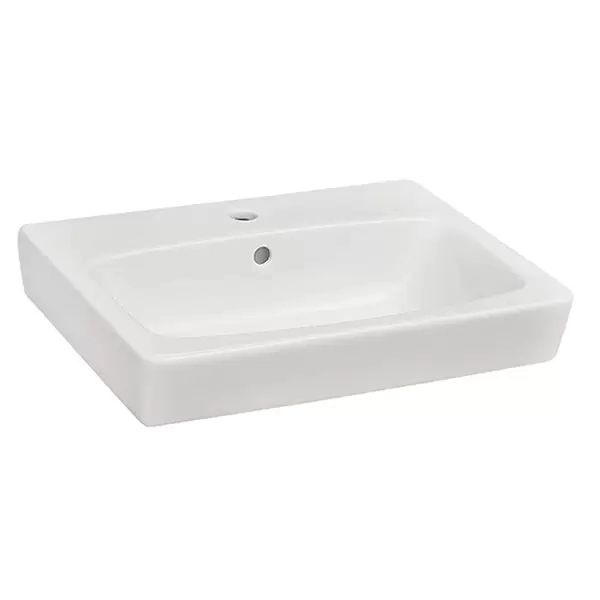 - Прямоугольный умывальник шириной 55 см с одним отверстием для смесителя