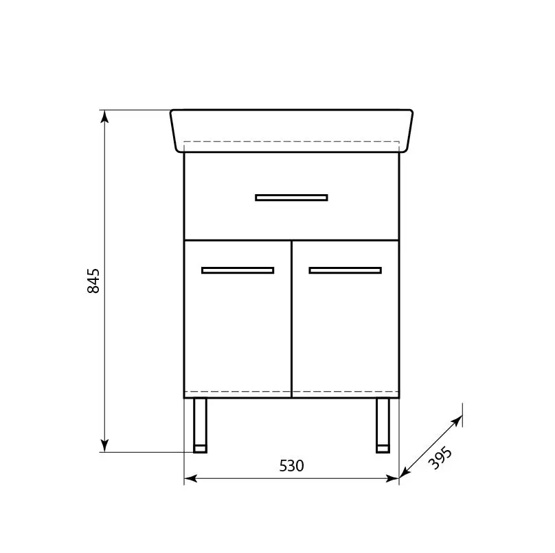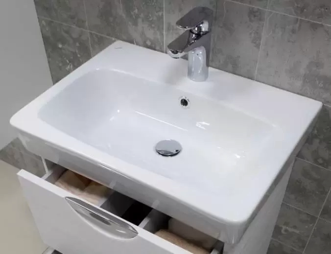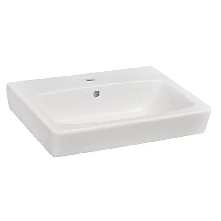 - Прямоугольный умывальник шириной 60 см с одним отверстием для смесителя